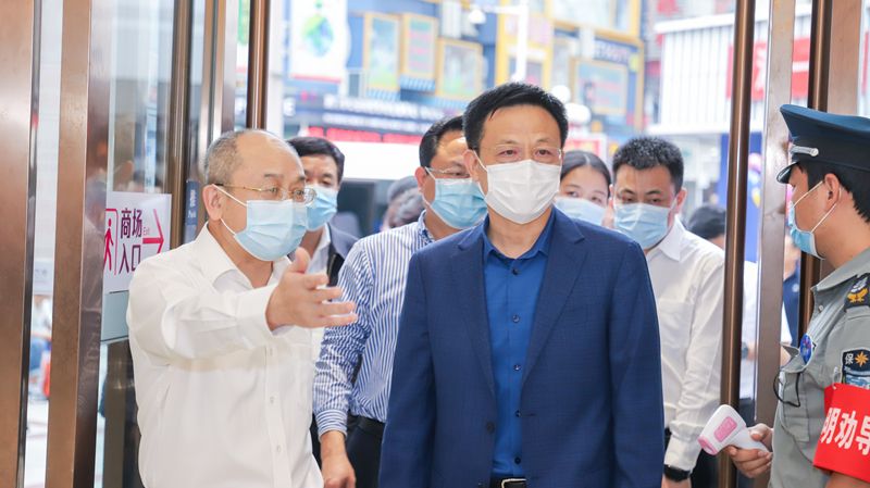 在百货大厦,王书记与楼层经理亲切交谈,了解复工复产后品牌经营情况、换季货品储备、销售业绩等,并嘱咐大家要坚定信心,保重身体,在做好经营工作的同时,更要常抓不懈做好安全防疫。