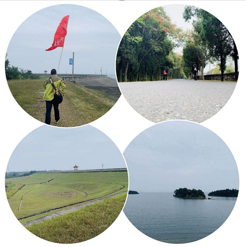 太阳回归,连心情也一同飞扬,迎着微凉的秋风,大家行走在大坝上,边走边欣赏漳河湿地秋季美景,感受着大自然的活力和生机,脸上洋溢着灿烂、自信的笑容,你一言我一语尽情抒怀,畅谈天地。呼吸着清新的空气,释放所有的忙碌和疲劳。一路前行,闲看云卷云舒、变化莫测,远处碧波连绵,水天一色,近处野草绵延,自然馈赠的景色美不胜收,组成了一幅幅美丽的画卷。