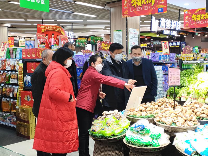 2月13日上午,副市长丁岱到东方百货惠民农贸超市检查督导春节期间市场物资保供稳价工作,市政协副主席、市市场监督管理局局长刘国芳、市政府副秘书长王娈、市商务局副局长彭孝林参与检查,市供销社监事会主任曾令军、东方百货主要负责人张兴平陪同检查。