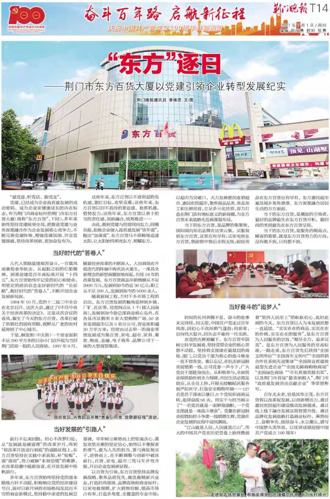 “东方”逐日——荆门市东方百货大厦以党建引领企业转型发展纪实