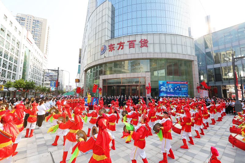 9月28日上午8时30分,东方百货班子成员、中层管理干部、优秀员工代表以及各界嘉宾齐聚东方百货大厦,共襄盛举。喧天的锣鼓,奏响东方百货24周年庆典的华丽乐章;飒爽的英姿,展现东方儿女蓬勃向上的青春力量;伴随着东方巾帼锣鼓队的精彩表演,“24载逐梦未来”东方百货24周年庆典仪式正式拉开序幕。