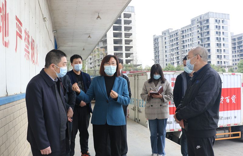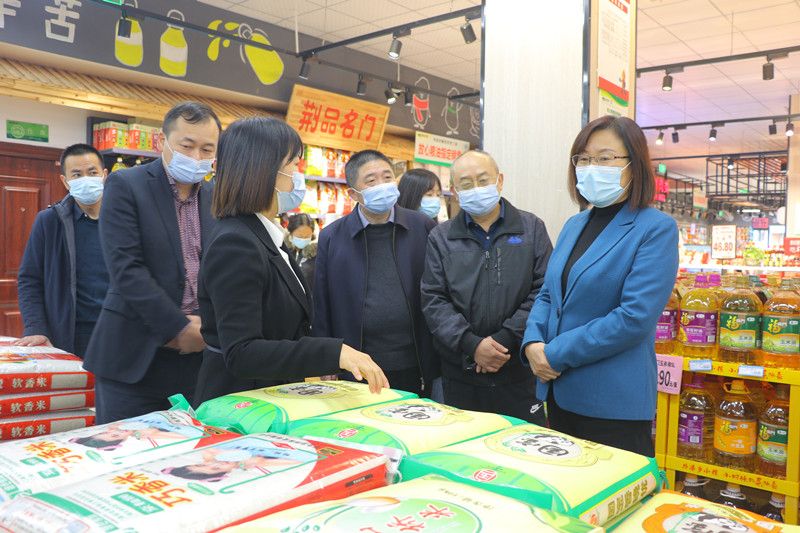 在东方百货惠民农贸超市浏河湾店,赵书记详细了解了超市内惠民专区、扶贫专区、基地专区、“荆品名门”专区的产品来源、销售现状以及经营有关情况,赵书记强调要充分发挥销售终端优势,推广全市域、全品类、全产业链的农产品区域供应品牌,引领农业产业结构转型升级,促进农产品精深加工业做大做强;要向标杆学习,创新经营模式,丰富商品品类,更好服务民生。随后,赵书记来到东方百货物流配送中心,实地察看了物流配送中心仓储管理、产品供应、物流配送等情况,她指出要时刻绷紧疫情防控之弦,扎实做好冷链物流疫情防控工作;要因时因势调整运营模式,提供线上线下双服务,实现服务群众零距离。