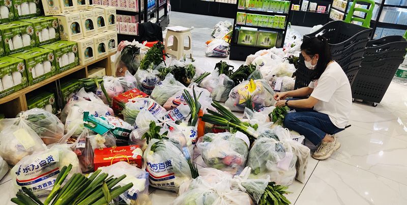 受疫情影响,超市订单持续井喷式增加,为缓解一线员工人手不足问题,公司党委紧急部署、组织动员,层层细化落实责任,进一步完善各项防控措施,确保责任上肩、措施落地,党员干部及员工集体下沉一线超市,助力抗疫保供;超市采购进一步拓宽货源渠道,物流配送中心增加物资备货量,通过统筹调配,全力保障各类民生物资有序供应。
