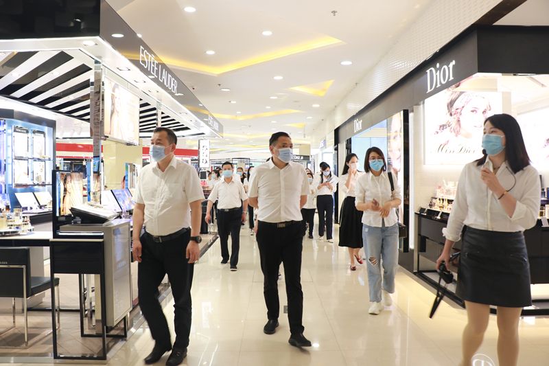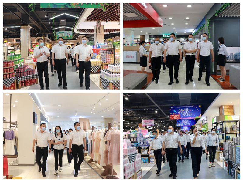 调研组一行先后前往东方百货沙洋长林店、沙洋购物广场、京山购物广场、钟祥购物广场、中天街百货大厦、超级生活馆、中天街家电、无人超市、京奥超市、掇刀购物广场进行实地考察调研。“疫情防控千万不能放松”,“格局调整要持续加快进度”……在各卖场,调研组一行边走边看,边听边问,不时与部门负责人、员工交流,详细了解各部门安全生产、格局调整、项目推广、品牌引进等工作开展情况。调研组对卖场各项成绩的取得给予了肯定,并对下一步工作提出具体要求,同时鼓励各部门要继续探索推进工作的新路径、新方法,促进企业发展取得新进展、新成效。