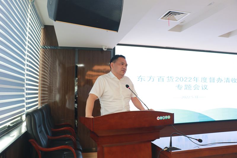 为加强企业资产监管,确保资金绝对安全。5月31日,东方百货在来凤大厦11楼会议室召开专题清收清欠督办工作会议,大会由公司党委副书记、纪委书记金柱平同志主持,公司班子成员、部分部门负责人等参加了此次会议。