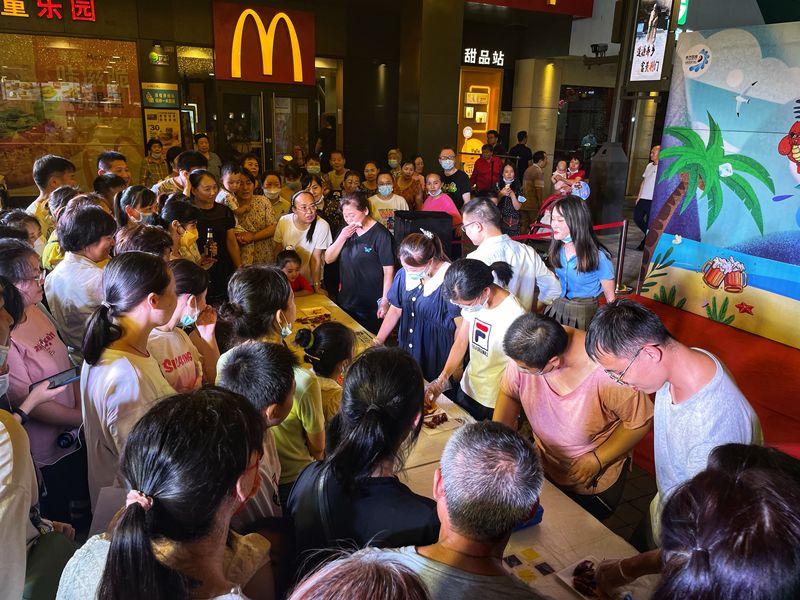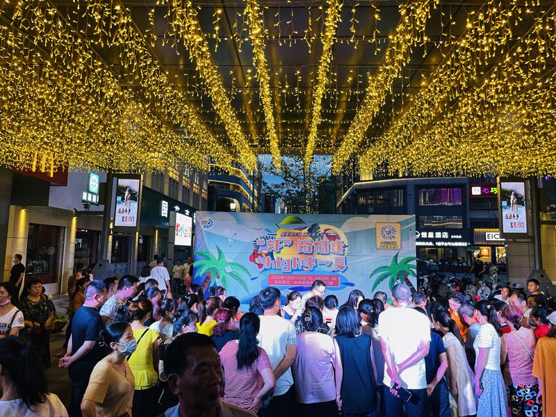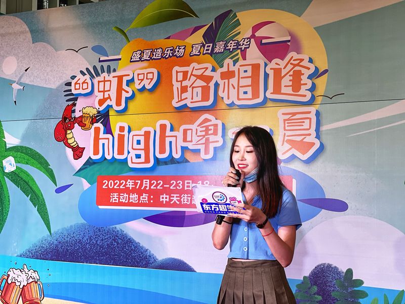 大暑已至,盛夏来临。7月22日-7月23日,东方百货在中天街百货大厦西广场开展以“‘虾’路相逢 嗨‘啤’一下”为主题的纳凉晚会,晚会在掌声中拉开序幕。活动现场,灯光璀璨、人头攒动、热闹非凡;单手抓酒免费喝、单手剥虾赢挑战、0.1元扫码送10元美食券以及互动小游戏等趣味性活动应有尽有,燃爆全场,让您在吃喝玩乐购中,尽享花样生活,在“趣味”舞台中,点亮城市“夜经济”。