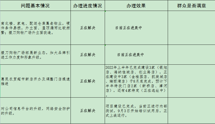 荆门市东方百货大厦下基层察民情解民忧暖民心实践活动效果清单