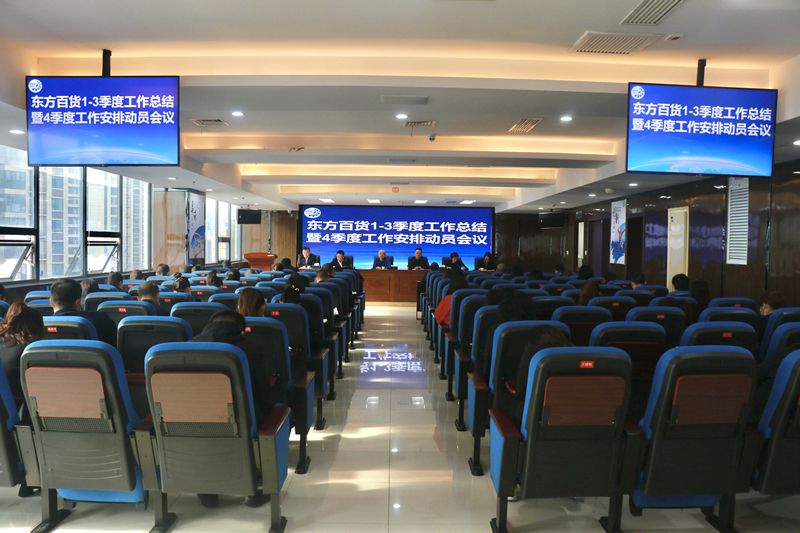 10月21日,东方百货在来凤大厦11楼会议室组织召开1-3季度工作总结暨4季度工作安排动员会,进一步坚定年度任务目标不退不让的信心和决心,鼓足动力、激发活力、广泛动员全体干部职工以饱满的精神状态和过硬的工作作风,全力以赴冲刺今年“最后一公里”。