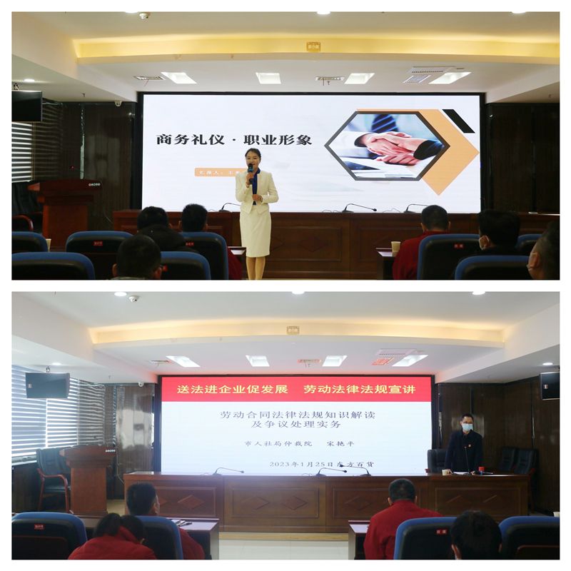 随后,东方百货特邀讲师—中国形象设计协会注册礼仪培训师王米奇为全体参训人员带来了一场干货满满的职场礼仪讲座;同时特邀市人社局仲裁院专家宋艳平前来东方百货开展“送法进企业”活动,进行劳动法律法规知识宣讲,进一步强化“依法治企”思维,提高与会人员法律意识和法律观念,增强懂法、守法、用法的责任感和自觉性,为企业持续健康发展营造良好的法治氛围。