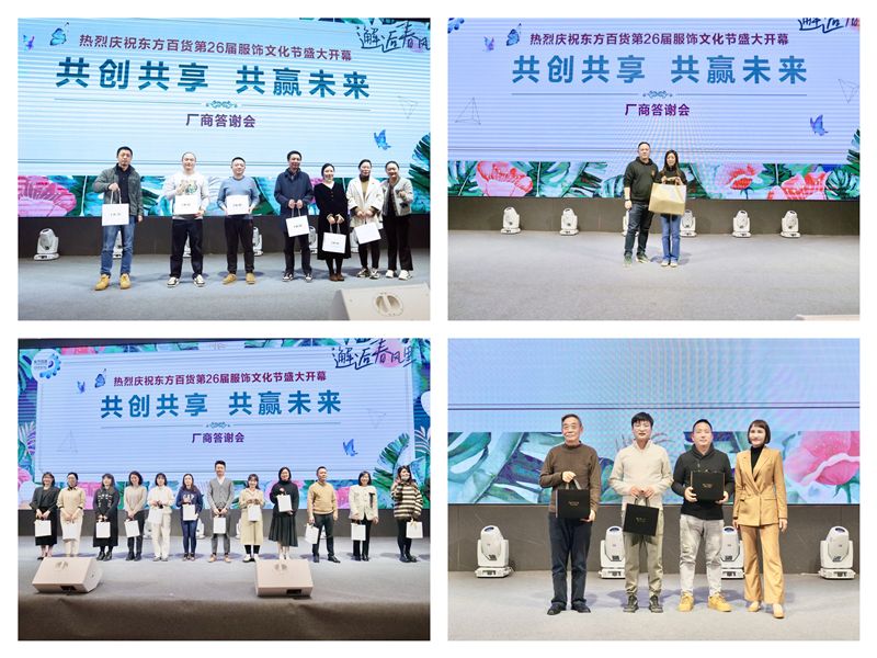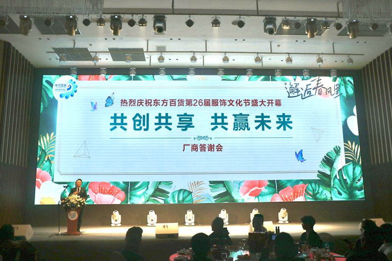 3月24日晚,以“共创共赢 共享未来”为主题的东方百货第26届服饰节“邂逅春风里”暨2023厂商答谢会在蓝洋林顿酒店盛大开幕,东方百货中层及以上管理干部、各大品牌厂商代表近200人欢聚一堂,畅叙情谊、共话未来。