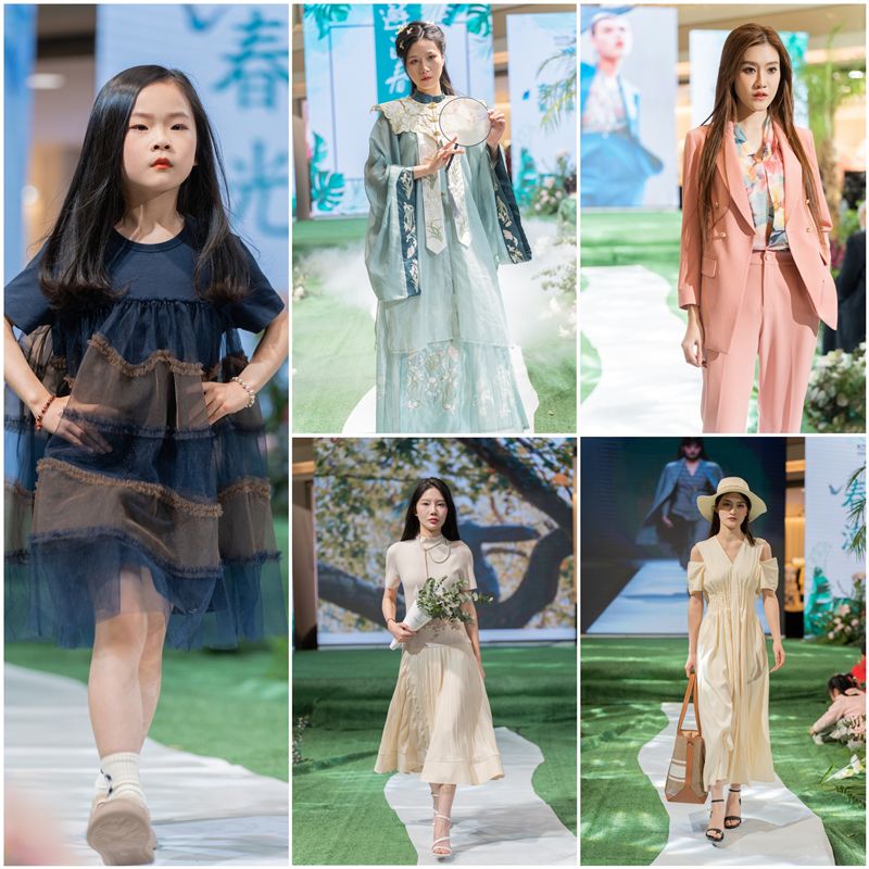 “款式运动百搭,渐变满印潮流亮眼,进口防晒纱使防晒更持久,短袖两侧撞色撞色拼接设计,时尚新颖,后幅透气网眼拼接,韩国进口中空纱线,吸湿速干;香风外套采用特殊的网格面料代替传统小香风面料增添了时髦感,稍带垫肩的阔型显得人精神气十足,增添气场的同时又不失女人味,牙刷绣体现了工艺的细致感;音符印花连衣裙通过满身印花的形式体现在单品上,仿佛全身跳动的音符,俏皮又灵动,充满艺术气息,大裙摆加高腰设计,显高又优雅;珈仕达独有的轻套西,采用独家研发黑科功能,棉感舒适,防泼水,防油污,时尚流行的暗棕色,百搭显年轻,通勤差旅场合可轻松应对……”在主持人的介绍下,一件件饱含春日色彩的服装在T台上一一呈现,每个模特、每件衣服都勾勒着一个又一个动人的品牌故事,一针一线、一剪一尺,都尽显智慧和匠心缔造的一个又一个经典的品牌传奇。