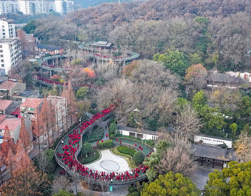 活动现场,群情振奋气氛热烈,参与者们个个精神抖擞,以爱健步、向健康的精气神登高抒怀迎新年。早7:40分,随着活动开始的发令,大家迈开矫健步伐,争先恐后踊跃向前,从龙泉公园出发,途经环形跑道,沿着蜿蜒的登山步道有序登高,最终到达西宝山顶。行进过程中,全员步履轻快、笑声连连,一路奔走一路喜悦,相互加油打气,感受冬日别样风光,享受大汗淋漓的畅快,体验健步带来的放松与愉悦。