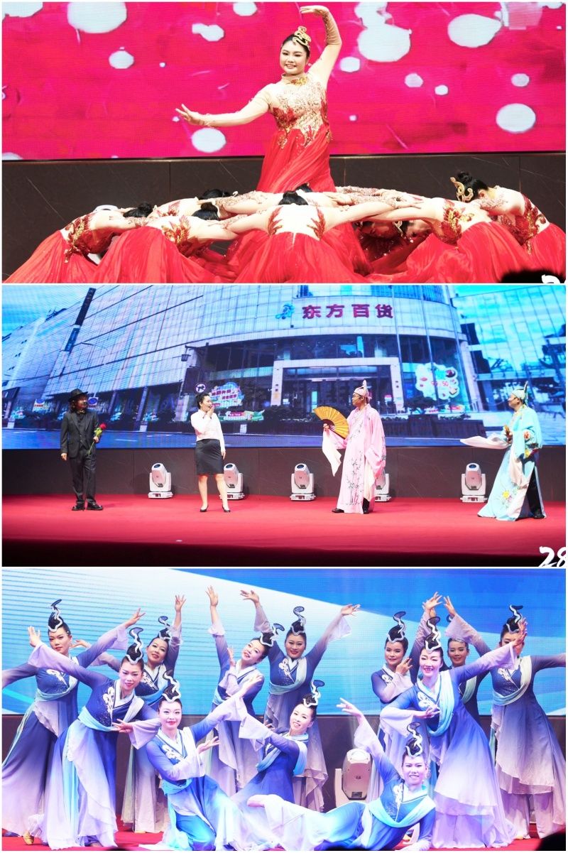 从饱含地域风情的欢腾舞蹈,到穿越企业发展历程的创意情景剧;从韵味悠长的古典韵律,到燃爆全场的现代说唱,一个个精心编排的节目接连登场,不断将现场气氛推向高潮。舞台之上,光影交织,歌声飞扬;席座之间,笑语欢声,掌声雷动。整场演出不仅是一场文艺汇演,更是东方人凝聚力与昂扬斗志的生动展现,在艺术的共鸣中,现场嘉宾的心更加紧密地联结在一起,共同憧憬着东方百货更加灿烂的明天!
