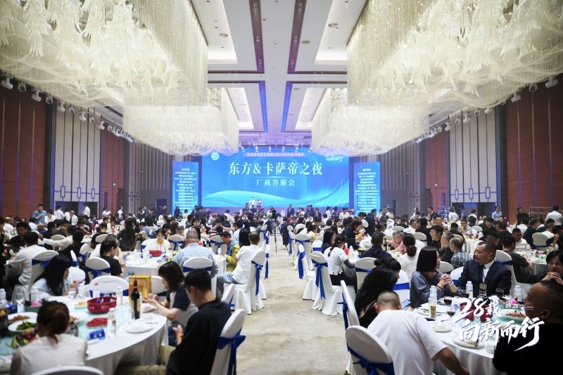 9月27日下午,东方百货28周年厂商答谢会在蓝洋林顿酒店隆重举行,市供销社领导班子成员和相关负责人、东方百货领导班子成员和管理人员,以及来自全国各地的品牌厂商代表近500人欢聚一堂,共襄盛典,共谱华章。