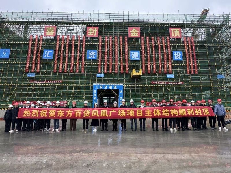 10月20日上午,位于高新区·掇刀区白云大道与迎春大道交汇处的东方百货凤凰商业广场项目主体结构顺利封顶,标志着该项目建设取得关键性进展。
